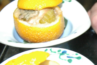 ゆず釜を器として、飾りで使うだけの料理とは訳が違います。 ゆずの中身にゆず味噌であえたフグを入れて、釜ごと焼きあげます。 本物のゆず釜・・・・・あなたにお届け!